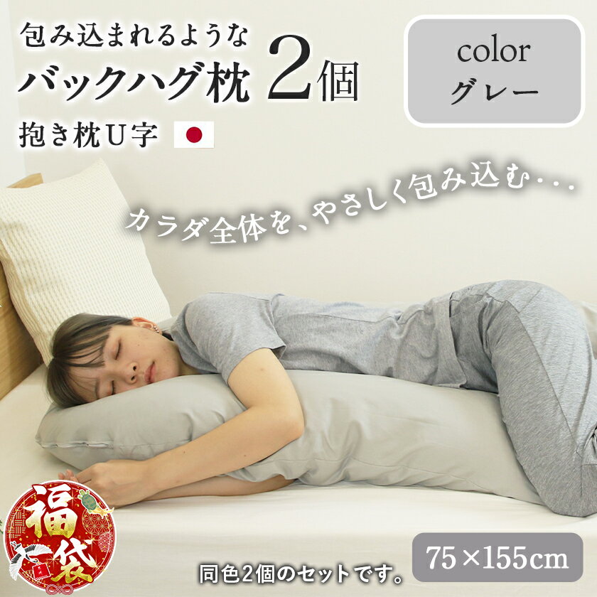 【ふるさと納税】【新春福袋★2026】【グレー】「バックハグ枕」2個セット抱き枕・U字枕〜抱かれる安心感 〜 - バックハグ枕 抱き枕 U字枕 2個セット グレー 日本製 福袋 送料無料 28-J204-gr-F2026【宮崎県都城市は2年連続ふるさと納税日本一!】