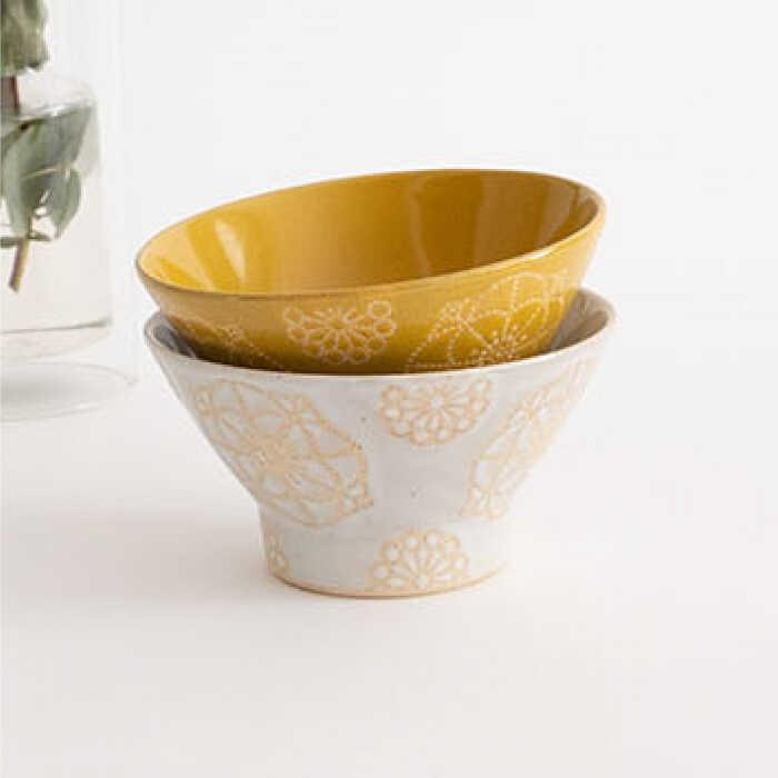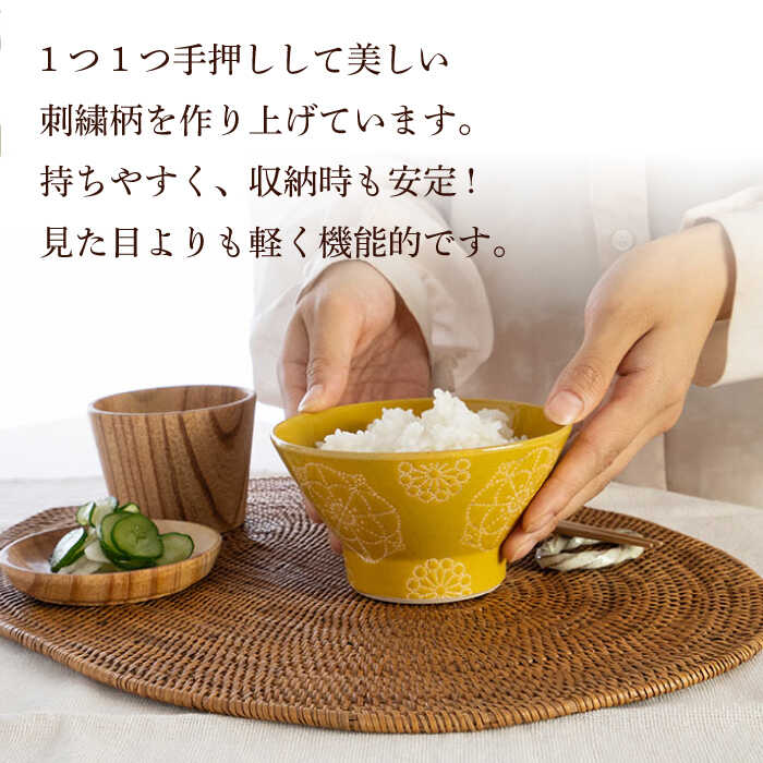- 【ふるさと納税】【波佐見焼】ステッチ くらわんか碗(ホワイト・イエロー)2点セット 【藍染窯】 [JC116]