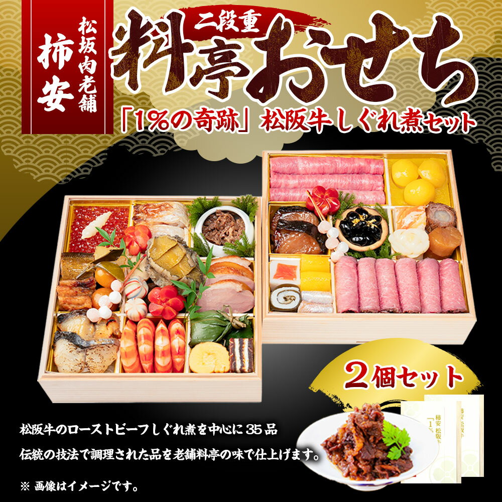 【ふるさと納税】松阪肉老舗 柿安 料亭おせち 二段重 「1%の奇跡」 松阪牛しぐれ煮 セット しぐれ煮(2個) 松阪牛 牛肉 お肉 ローストビーフ いくら 栗きんとん ずわい蟹真丈 水産物 お節 御節 おせち料理 お正月 年末年始 三重県 桑名市 送料無料 【2025年12月31日着】