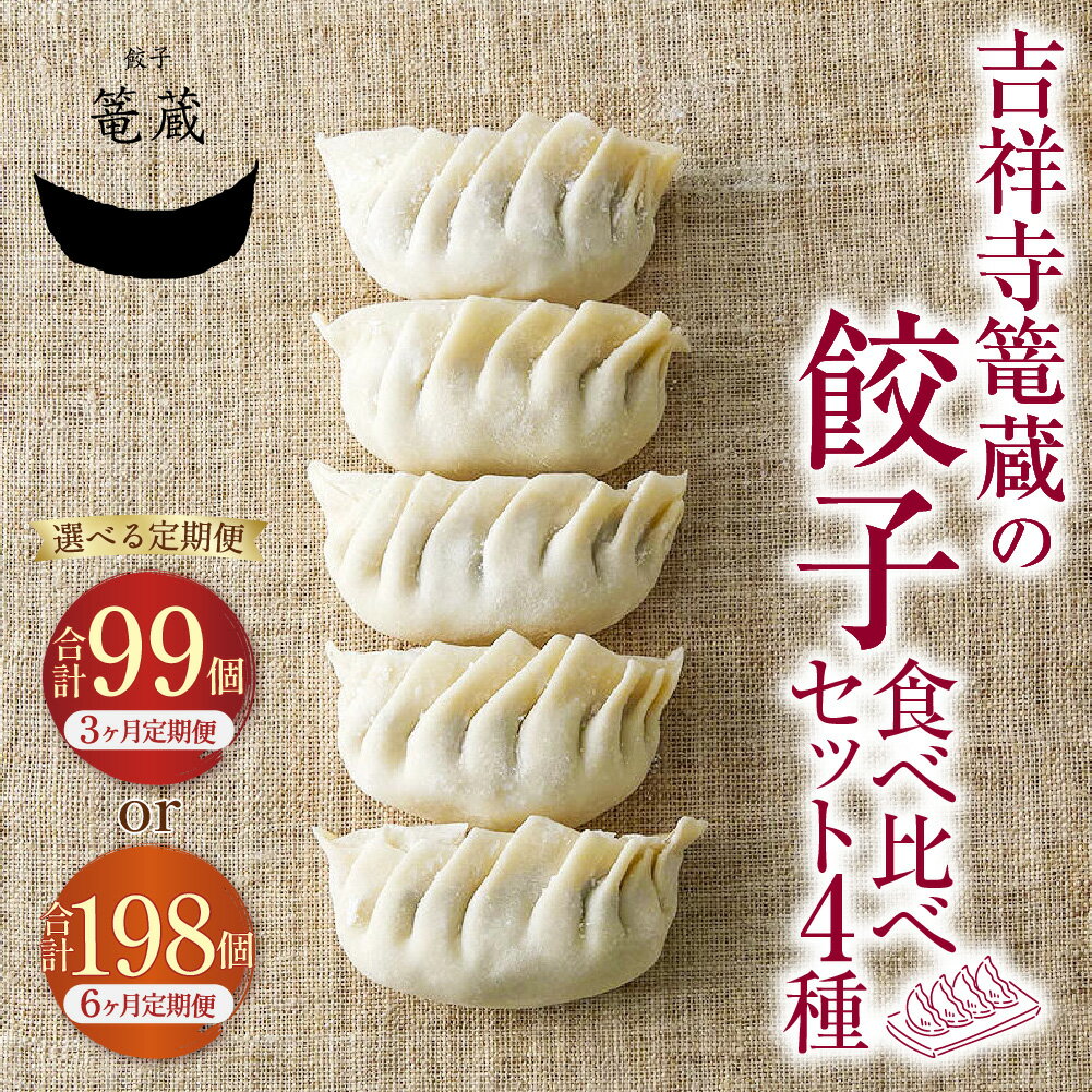 - 【ふるさと納税】<選べる定期便>吉祥寺篭蔵の餃子 食べ比べセット 4種 1回あたり計33個 3ヶ月 6ヶ月 キャベツ 豚肉 鶏肉 お肉 野菜 ギョウザ ギョーザ 中華惣菜 おかず ご飯のお供 国産 冷凍 東京都 武蔵野市 送料無料
