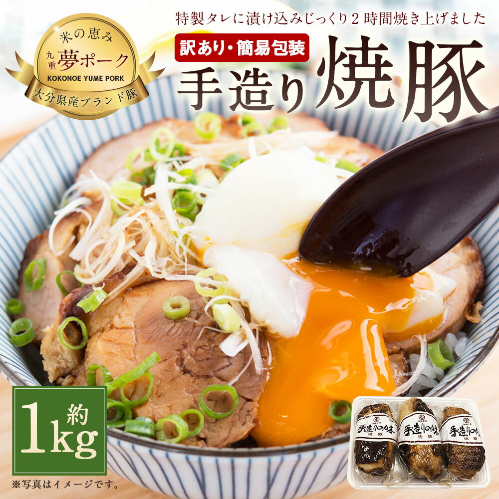 【ふるさと納税】【訳あり・簡易包装】豚モモ肉 手づくり焼豚 約1kg 焼き豚 チャーシュー 豚肉 豚もも肉 お肉 肉 大分県産ブランド豚 九重夢ポーク 送料無料