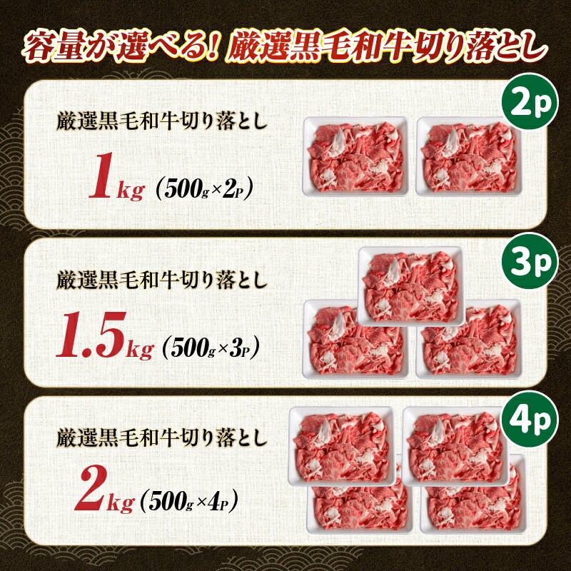 【ふるさと納税】【選べる内容量】【黒毛和牛専門店直送】厳選黒毛和牛切り落とし 1.0kg~2kg 牛 牛肉 肉 国産 国産牛 ギフト おすすめ 人気 贈り物 お裾分け 切り落とし お肉 牛切り落とし 和牛 宮崎県 小林市