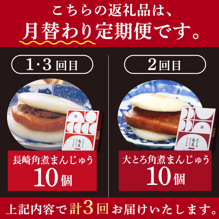 - 【ふるさと納税】【全3回定期便】<月替り!>角煮まんじゅう 2種 お楽しみセット (角煮まんじゅう10個・大とろ角煮まんじゅう10個)≪小値賀町≫ 【岩崎本舗】[DBG063]