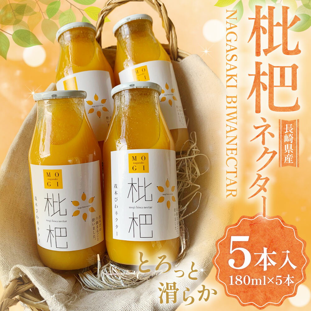 - 【ふるさと納税】【7営業日以内発送】枇杷ネクター180ml×5本 ビワ 枇杷 びわ フルーツ 果物 長崎産 長崎県産 ジュース 常温 九州 長崎県 長崎市 送料無料