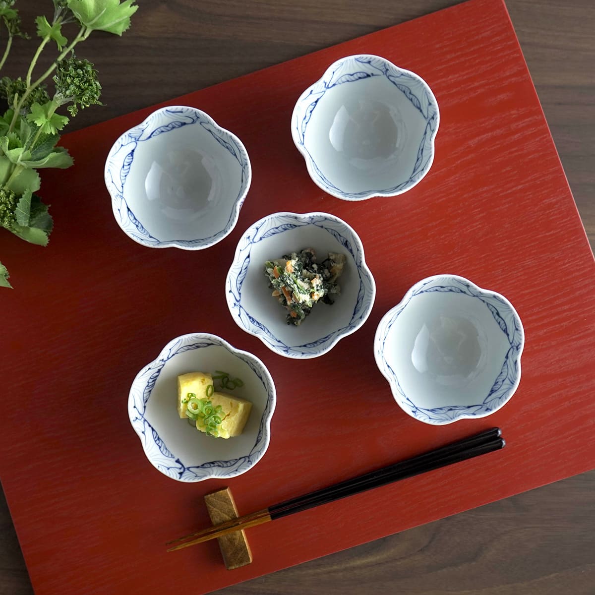 - 【ふるさと納税】有田焼 染付花弁紋 花型小付 5個セット【丸兄商社】食器 器 うつわ 陶磁器 和食器 小付 小鉢 豆鉢 5個 セット 手書き 染付 ブルー 温かみ おしゃれ 電子レンジ対応 A35-352