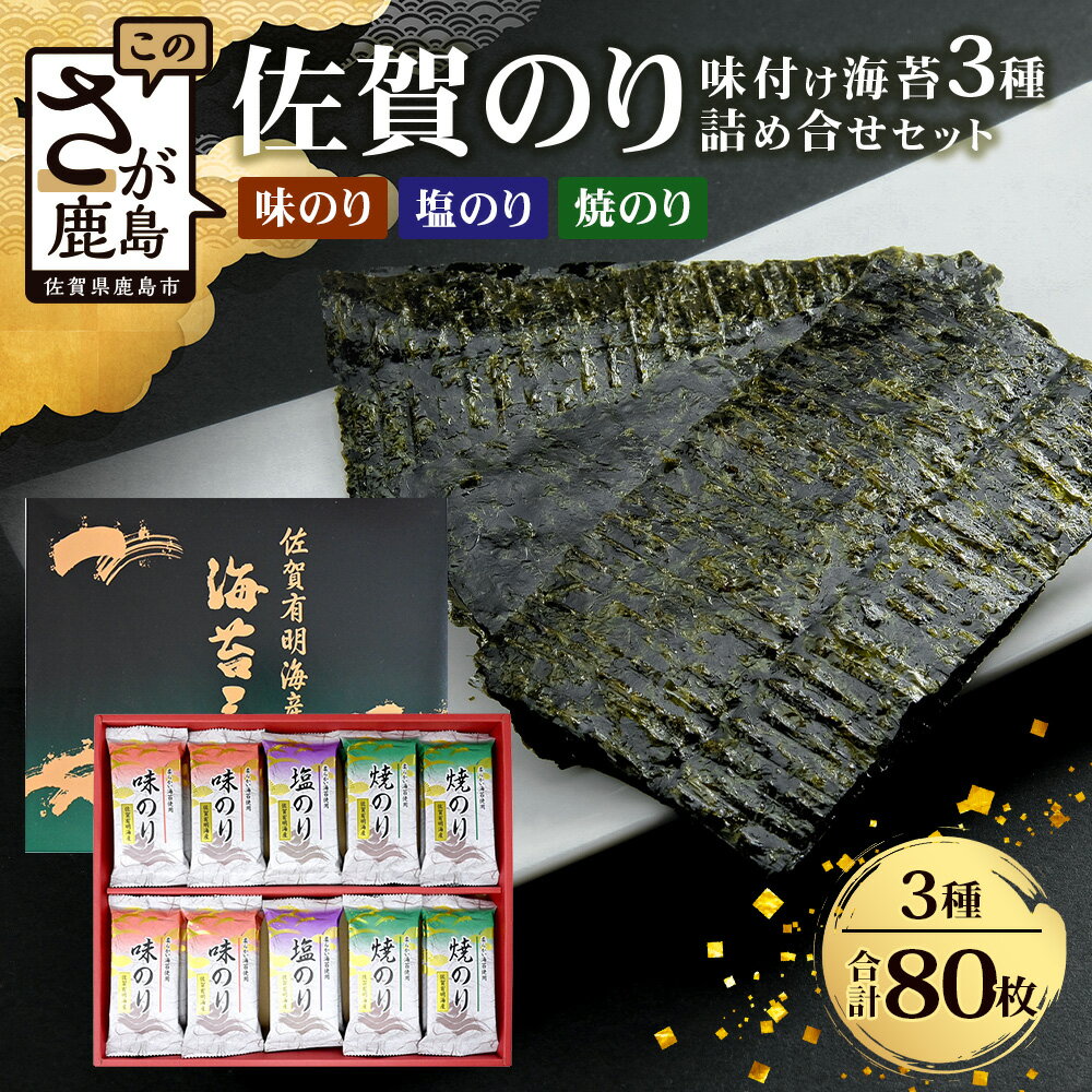 - 【ふるさと納税】佐賀 有明海産|味海苔|【ギフトにおススメ】佐賀のり 焼海苔 塩海苔 味付け海苔 3種 詰め合わせセット 12袋 or 20袋【合計48枚 or 80枚】うれしい個包装で便利 化粧箱入 小分け【若摘み海苔使用】