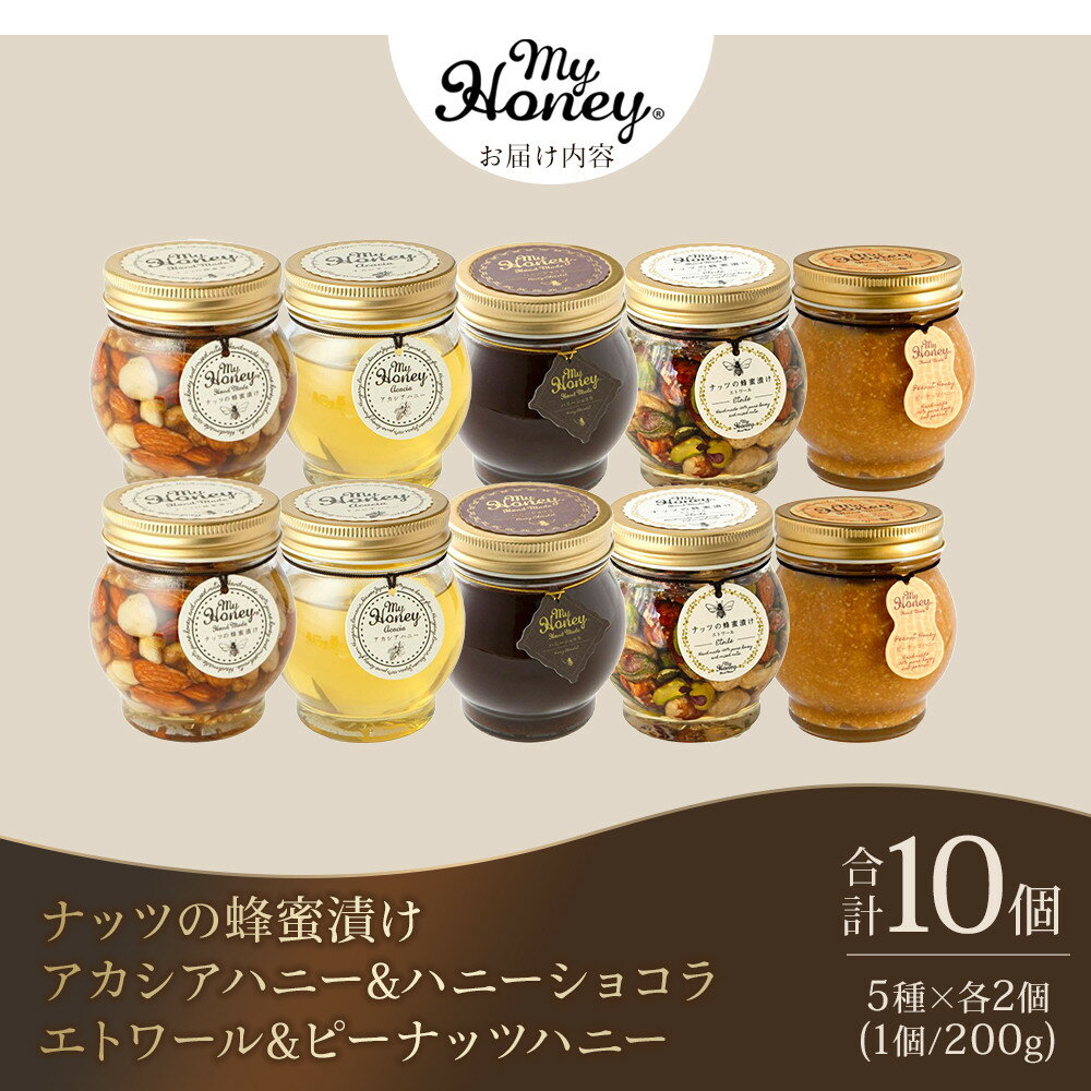 - 【ふるさと納税】ナッツの蜂蜜漬け&アカシアハニー&ハニーショコラ&エトワール&ピーナッツハニーのセット 各2個 | アカシアハニー はちみつ 蜂蜜 ナッツ 甘い ヘルシー 朝食 くるみ アーモンド カシューナッツ マカデミアナッツ ショコラ 鳥取県 北栄町 おすすめ 人気