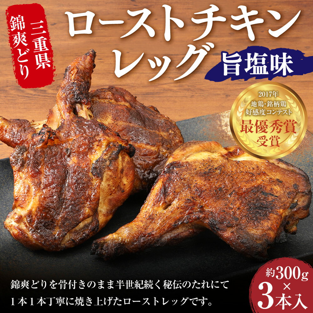 - 【ふるさと納税】三重県錦爽どり(伊勢どり) ローストチキンレッグセット 旨塩味 計約900g(約300g×3本入り) 鶏肉 お肉 骨付きもも肉 惣菜 おかず グルメ クリスマス パーティ イベント お祝い 記念日 冷凍 国産 三重県 桑名市 送料無料 【通常発送or2025年12月22日発送】