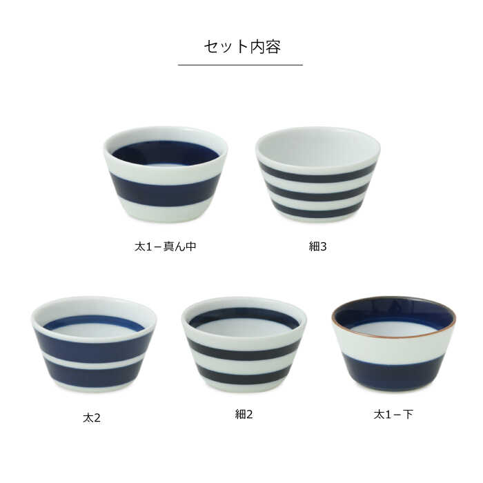 - 【ふるさと納税】 【 波佐見焼 】 ボーダーボーダー ボウルS 5柄セット ( 太1-真ん中 / 細3 / 太2 / 細2 / 太1-下 ) 食器 皿 【 natural69 】 [QA48]