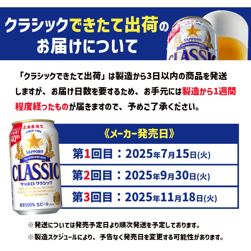 - 【ふるさと納税】★数量限定★≪9/30頃より順次発送予定≫『できたて出荷』サッポロクラシック350ml×24本 |サッポロ サッポロクラシック クラシック ビール 生ビール 北海道 ふるさと納税 恵庭市 恵庭【30014701】