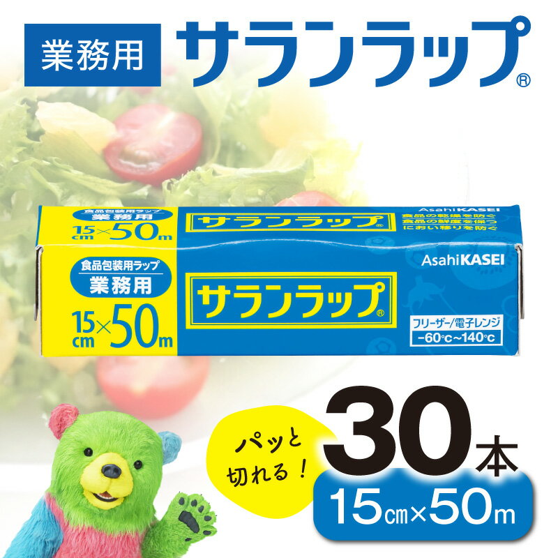 - 【ふるさと納税】サランラップ 業務用 15cm × 50m 30本 選べる 発送時期 旭化成 プロ使用 冷凍保存 高いバリア性 耐冷温度 -60℃ 耐熱温度 140℃ 臭いもれなし 密着性 切りやすい ハリ コシ 引き出しやすい ラップ 使い捨て 宮崎県 延岡市 送料無料