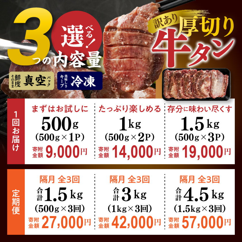 - 【ふるさと納税】【内容量&お届け回数&発送時期が選べる!】【訳あり】厚切り牛タン塩麹漬け - ランキング急上昇中 牛肉 タン 焼肉 鉄板焼き バーベキュー 訳あり 不揃い スリット加工 500g/1kg/1.5kg 10日以内/翌月/定期便3回 隔月 送料無料 SKU-3313【宮崎県都城市】