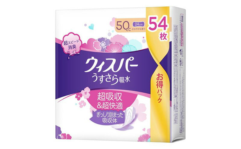 - 【ふるさと納税】ウィスパー うすさら吸水 50cc 54枚入 2パック パンティーライナー P&G 日用品 女性 用品 消耗品 吸水シート 尿漏れパッド 尿漏れ 尿ケア 吸水ケア 吸水ナプキン スリム シート 吸水 超吸水 消臭 無香料 兵庫 兵庫県 明石 明石市