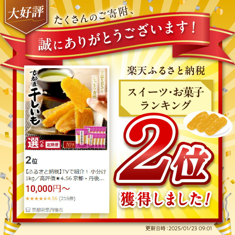 - 【ふるさと納税】★高評価4.6 ★干し芋・リピート人気★TVで紹介/ジッパー付 京都・丹後地域優秀産品受賞 京丹後産 干しいも 400g 1kg 定期便 隔月 3ヶ月 国産 紅はるか 4袋 10袋 和菓子 平干し芋 さつまいも 人気 非常食 保存食 ほしいも ふるさと納税 干し芋 小分け