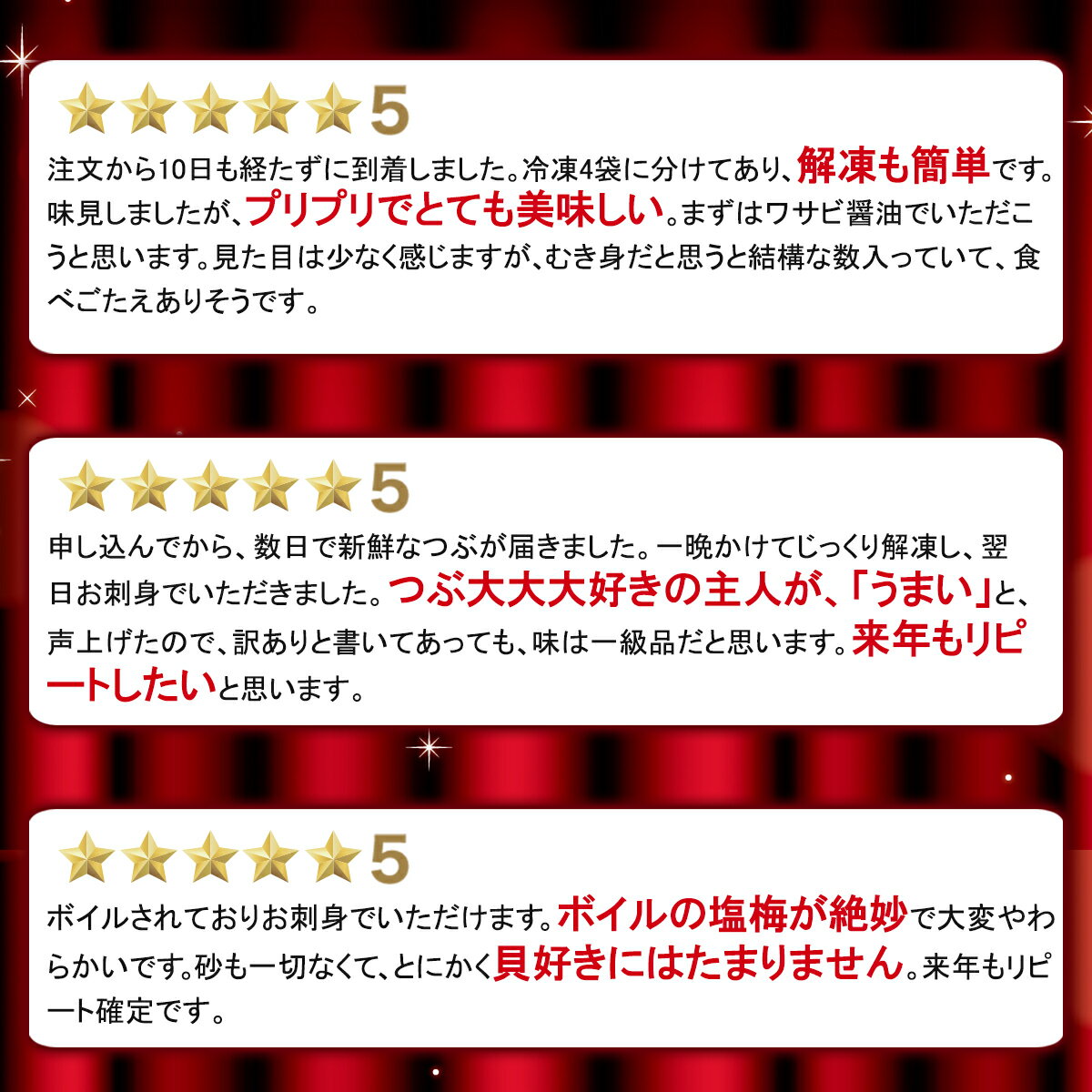 - 【ふるさと納税】 【内容量が選べる】 訳あり 生食用 前浜 ボイルツブ貝 600g~2kg 規格外 不揃い 北海道産 つぶ貝 ツブ 刺身 煮つけ おでん アヒージョ 煮物 おつまみ 晩酌 酒 海鮮 海産 冷凍 送料無料