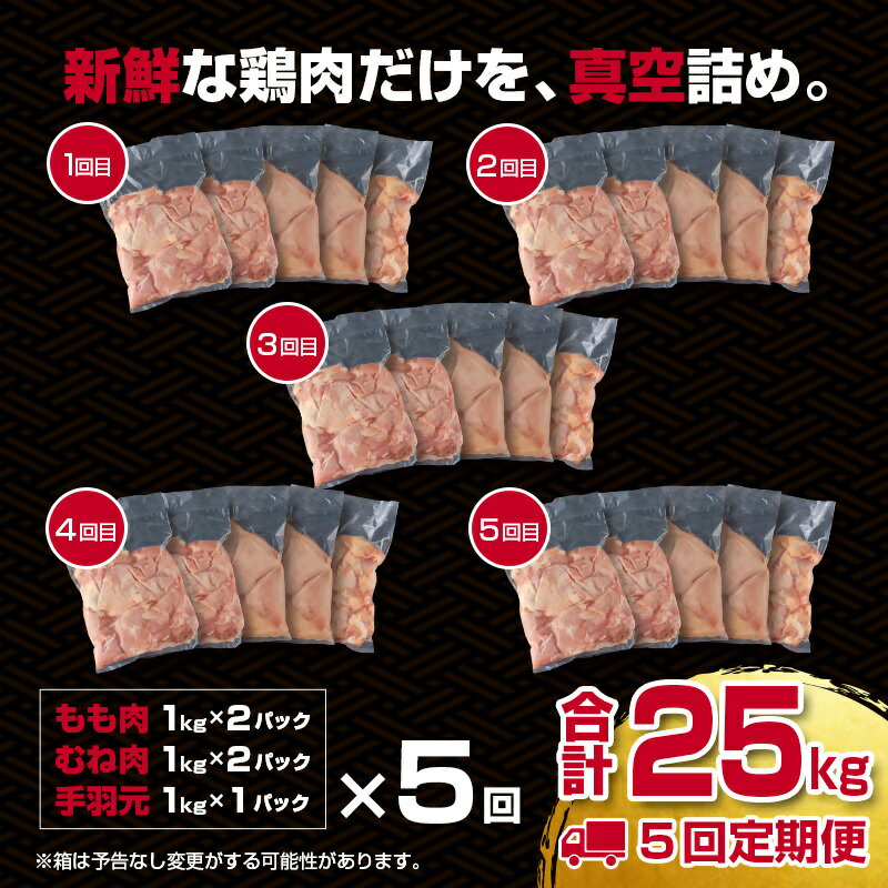 - 【ふるさと納税】「定期便」宮崎県産若鶏(わかどり)合計5kg「もも肉2kg・むね肉2kg・手羽元1kg」5回<7.5-14> 宮崎県 鶏肉 1枚 もも肉 モモ 2kg ムネ肉 先行予約