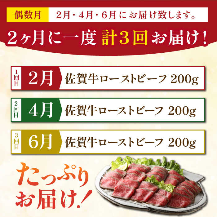 - 【ふるさと納税】<偶数月発送>【全3回定期便】三栄の佐賀牛ローストビーフ(1〜2人前)200g 【肉の三栄】 霜降り 黒毛和牛 和牛 佐賀牛 ローストビーフ[HAA126]