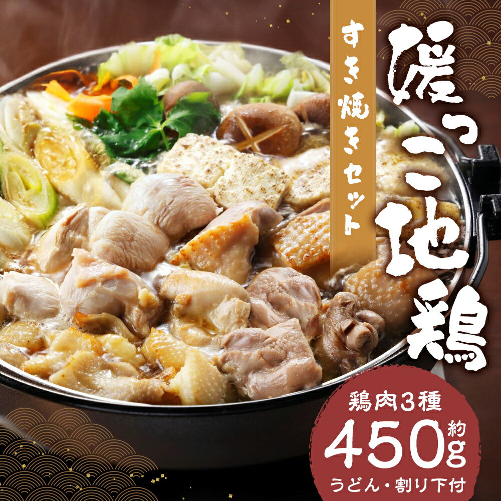 【ふるさと納税】媛っこ地鶏 すき焼き セット 鶏肉3種 約450g 割り下 うどん すきやき 鶏モモ 鶏もも 鶏むね 鶏ムネ 鶏皮 お肉 肉 鶏肉 地鶏 セット 詰め合わせ 惣菜 麺 冷凍 国産 愛媛 愛媛県 送料無料(905)