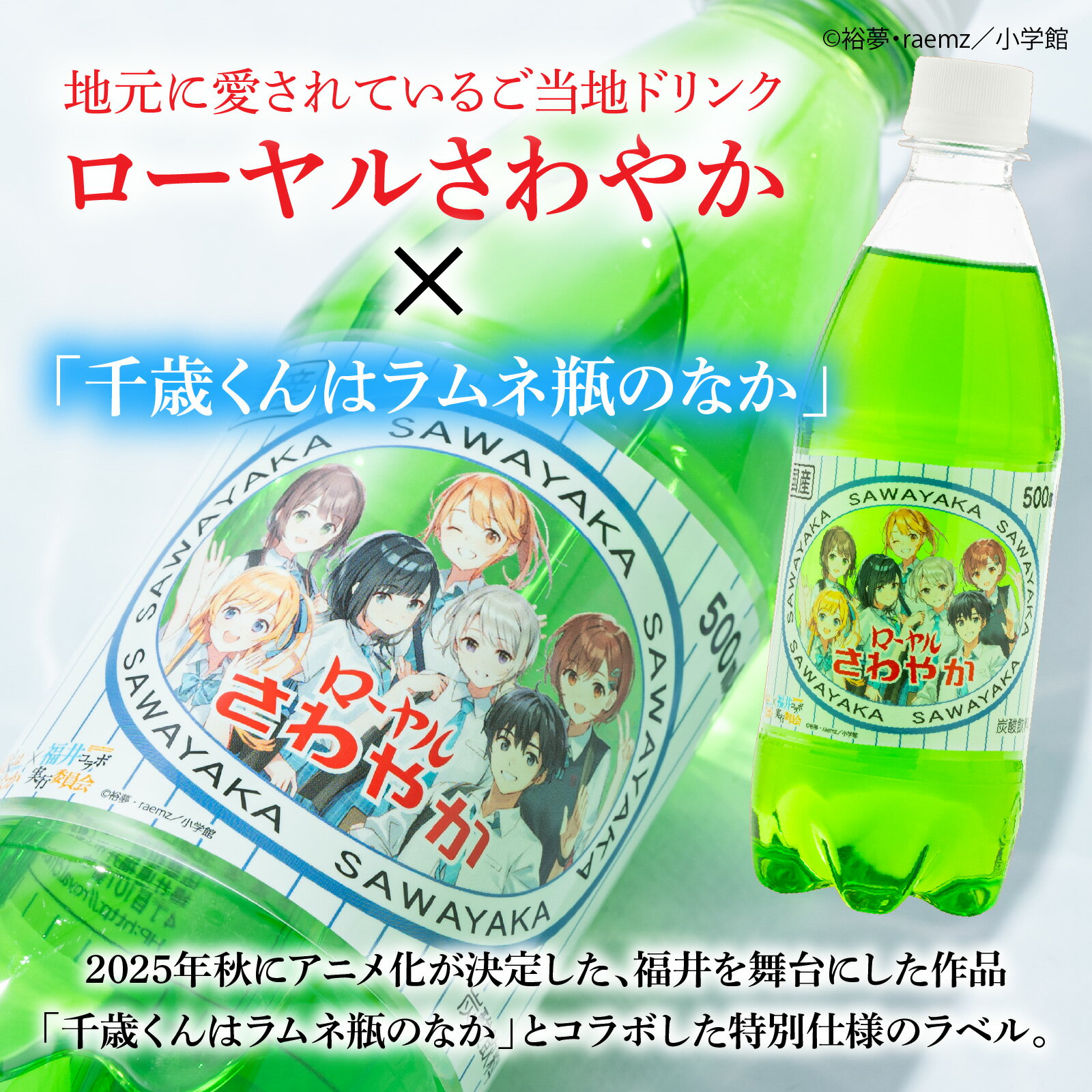 - 【ふるさと納税】ローヤルさわやか コラボラベル「千歳くんはラムネ瓶のなか」 [A-030025] / ご当地 サイダー ドリンク アニメ チラムネ ちらむね コラボ 聖地 炭酸 炭酸水 水 微炭酸 24本 1ケース 500ml ペットボトル 北陸 飲料 福井県 福井市 舞台 数量限定 メロンソーダ