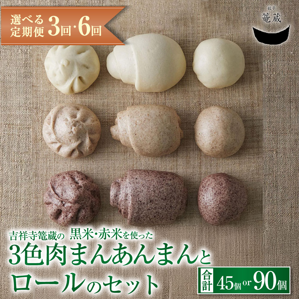 - 【ふるさと納税】<選べる定期便>吉祥寺篭蔵の黒米・赤米を使った3色肉まんあんまんとロールのセット 1回あたり15個 3ヶ月 6ヶ月 おまんじゅう 饅頭 豚肉 お肉 野菜 玉ねぎ 生あん 中華惣菜 おかず ご飯のお供 詰め合わせ 国産 冷凍 東京都 武蔵野市 送料無料