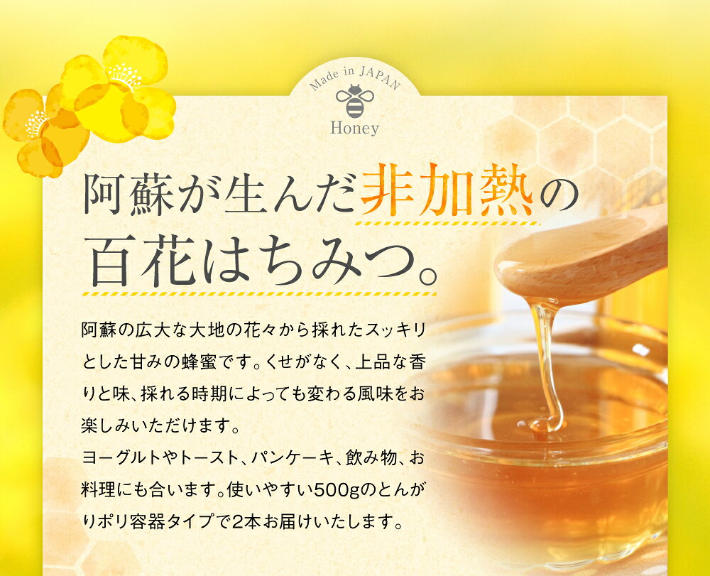- 【ふるさと納税】国産 百花はちみつ 阿蘇 合計1kg (500g×2本) とんがりポリ容器 ハチミツ はちみつ ハニー 蜂蜜 熊本県産 九州産 発送時期が選べる 送料無料