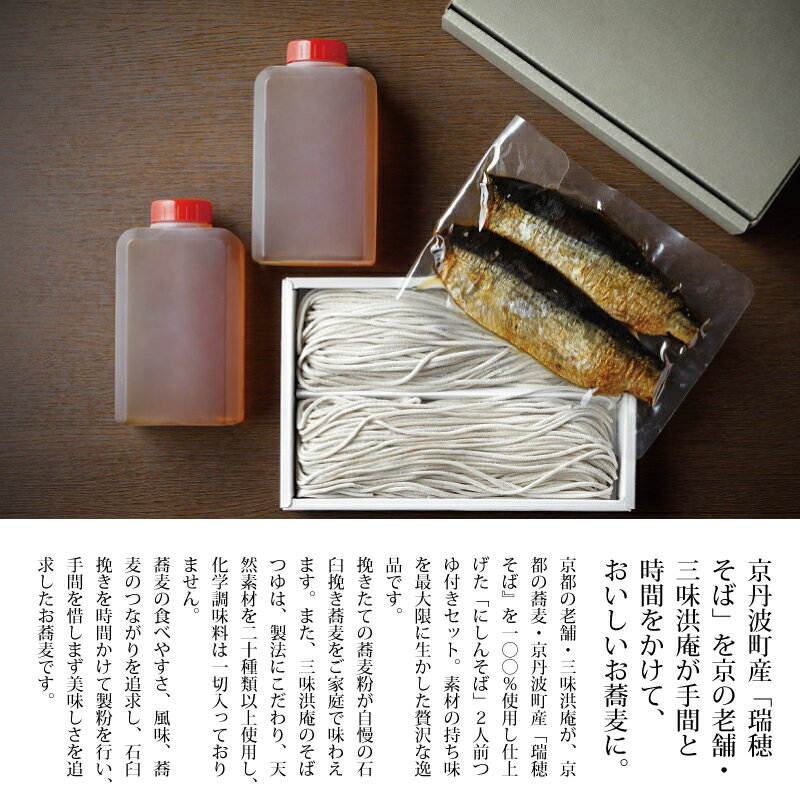 【ふるさと納税】【 年越しそば 】 石臼挽き 自家製粉 瑞穂そば ( にしんそば ) 2人前 つゆ付き ≪ 京丹波町産蕎麦100% 使用 ≫ 2025年12月発送 【 年内発送 】 ※北海道・沖縄・その他離島への配送不可