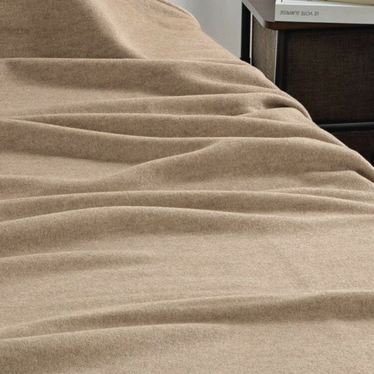無着色 キャメル混ウール毛布 (毛羽部分) シングル [1366]