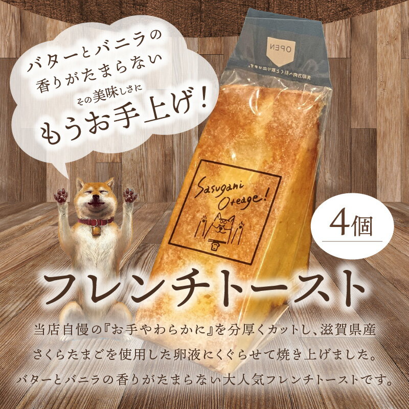 - 【ふるさと納税】フレンチトースト 4個 分厚くカット 滋賀県産さくらたまご 使用 バターとバニラの香り パン 食パン トースト おやつ 菓子パン ベーカリー 朝食 食品 冷凍 お取り寄せ お取り寄せグルメ 滋賀県 守山市 送料無料