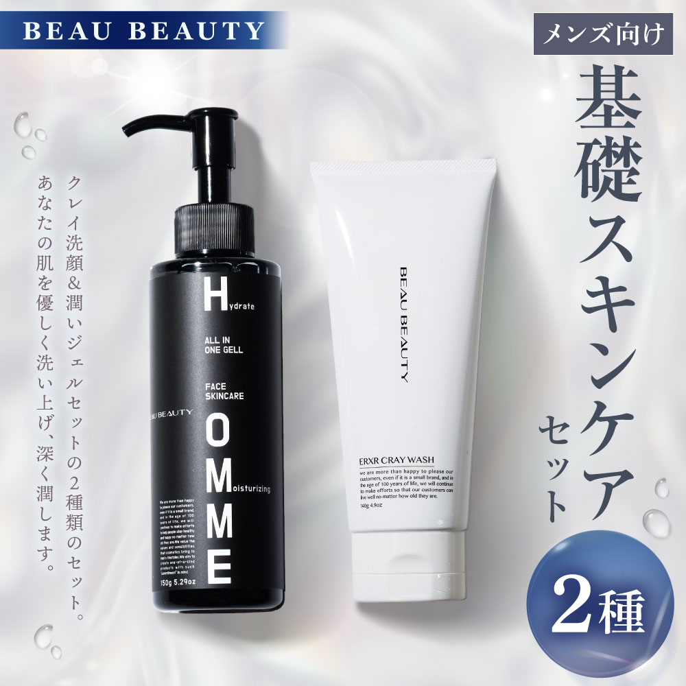 【ふるさと納税】BEAU BEAUTY 男性用 基礎セット 2種(クレイウォッシュ・モイストジェル) 洗顔 オールスキンジェル 毛穴汚れ 乾燥肌 敏感肌 うるおい 保湿 ハリ 美肌 ツヤ肌 メンズ 岐阜県 美濃加茂市 送料無料