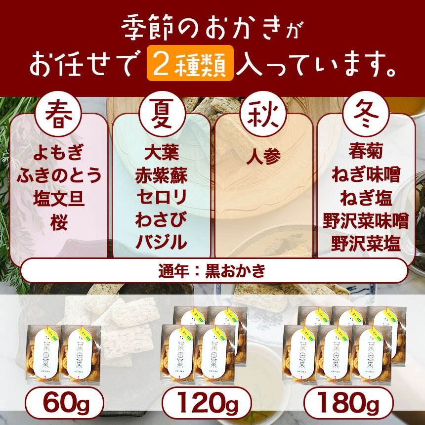 【ふるさと納税】【選べる】季節のおかき 60g or 120g or 180g │おかき せんべい 煎餅 素材 米菓 お菓子 おやつ 信州 長野県 松本 ふるさと納税