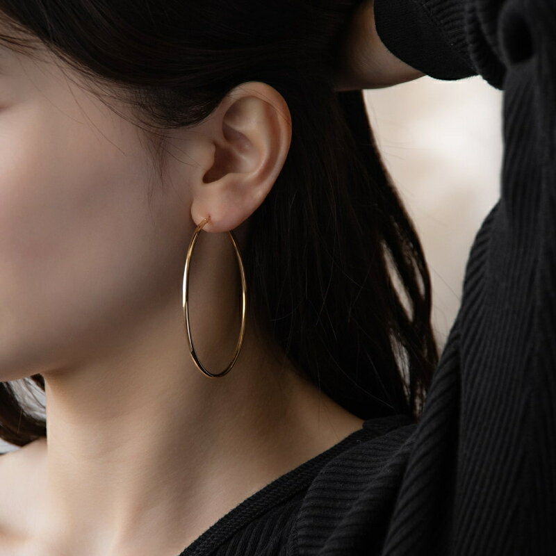 【ふるさと納税】< 甲府ジュエリー > ピアス ジュエリー レディース アクセサリー K18 イエローゴールド フープピアス シンプル ギフト プレゼント ラッピング ジュエリーケース付 保証書付 k199-021
