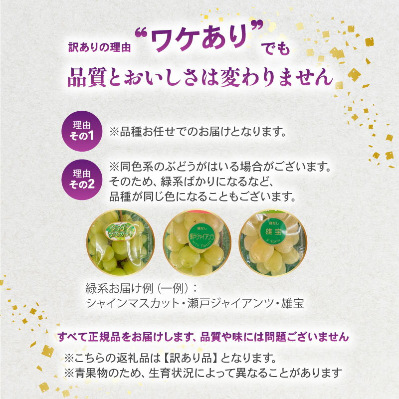 - 【ふるさと納税】 訳あり ぶどう セット 3種類 ぶどう 詰め合わせ セット シャインマスカット ピオーネ クインニーナ 果物 くだもの フルーツ 葡萄 ブドウ ぶどう マスカット シャイン マスカット 高橋農園 新潟県 新発田市 takahashi005