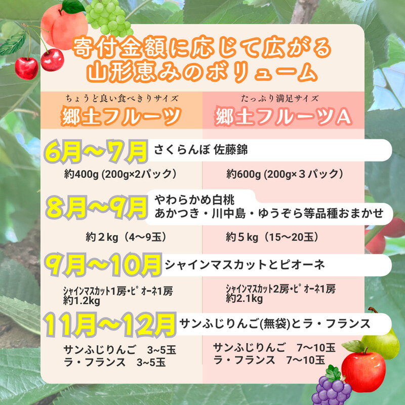 - 【ふるさと納税】【定期便4回】やまがた 郷土フルーツ定期便 (佐藤錦・やわらかめ白桃・シャインマスカットとピオーネ・りんごとラ・フランス) FZ23-929 FY25-342 満足サイズ 食べきりサイズ くだもの 果物 フルーツ 山形 山形県 山形市