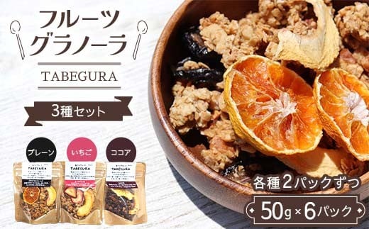 フルーツグラノーラ【TABEGURA】3種セット(各種2パックずつ) プレーン いちご ココア ドライ フルーツ おやつ 朝食 F7X-0510