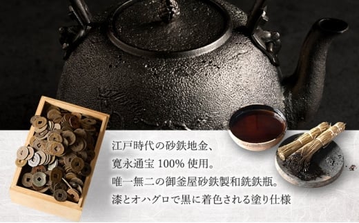 - オーダーメイド【南部鉄器】古銭砂鉄鉄瓶(こせんさてつてつびん) 塗り仕様 仁左衛門 鉄瓶 やかん 急須 伝統工芸品 最高級品 お祝い プレゼント 観賞用 岩手県 盛岡市 御釜屋 砂鉄製 鉄分 健康増進 鉄分摂取 お茶 美味しい 直火OK 錆びにくい 柚子形