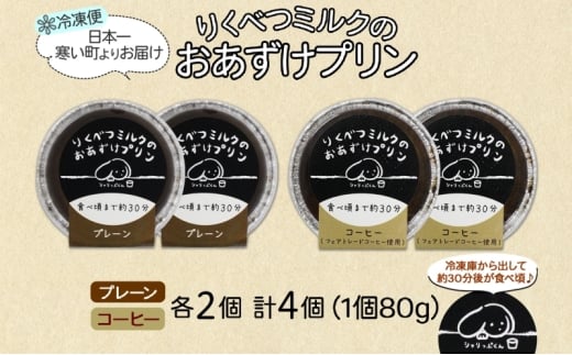 - 北海道 十勝 りくべつミルク おあずけプリン 2種 プレーン コーヒー 80g 各2個 計4個 プリン 冷凍プリン デザート おやつ ギフト 冷凍