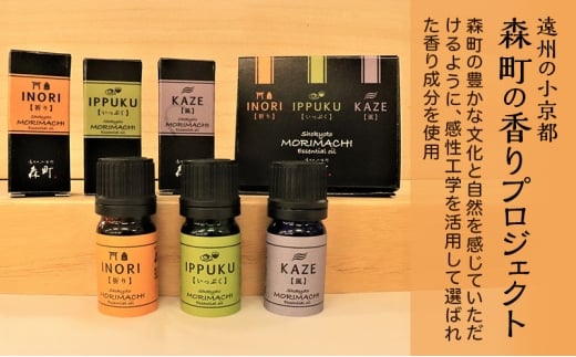 【森町の香りエッセンシャルアロマオイル 3本セット】アロマ エッセンシャルオイル 香り リラックス リフレッシュ 睡眠 感性工学 ギフト プレゼント セット 森町 静岡県