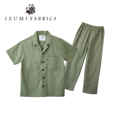 - 【男女兼用 サイズ:XS】半袖×長ズボン プレミアムガーゼパジャマ (カラー:ミモザグリーン)【1523353】