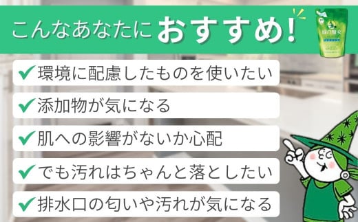 - 緑の魔女キッチン360ml×24個セット 環境配慮型洗剤 | 洗剤 環境 エコ やさしい 手肌 優しい 弱酸性 パイプクリーナー 除菌 防臭 詰まり 臭い キッチン 台所 台所洗剤 植物由来 キッチン洗剤 液体洗剤 油汚れ お中元 お歳暮 ギフト 大掃除 茨城県 龍ケ崎市