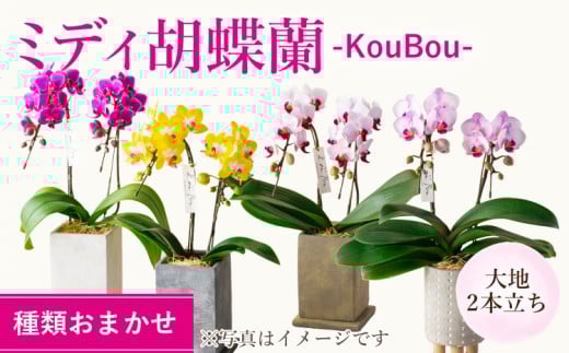 - 胡蝶蘭 熊本県産 ミディ胡蝶蘭 2本立ち 蘭 ラン 洋蘭 ミディサイズ 観賞用 贈答用 和モダン インテリア 植物 コチョウラン ランダム 花