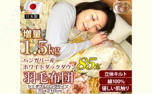 羽毛布団【SDL(セミダブルロング)】ハンガリー産ホワイトダックダウン85% ピンク系 FAD-1617