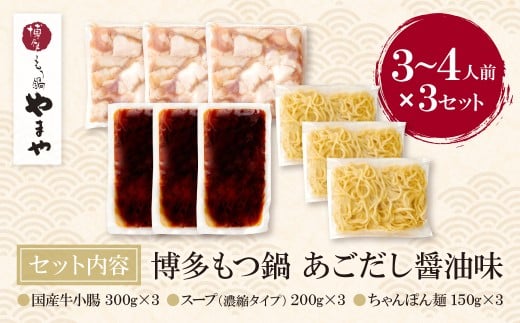 - W82-67 やまや ぷるっぷる♪博多もつ鍋セット(あごだし醤油味)3~4人前×3個セット