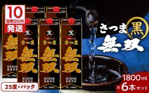 - 【10営業日以内に発送】さつま無双 黒 パック 1800ml 6本セット K095-007