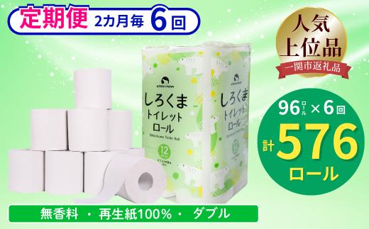 【隔月定期便・計6回配送】【ふるさと納税】しろくまトイレットペーパー ダブル 96ロール 定期便 6回 ふるさと納税 無香料 まとめ買い 大容量 日用品 生活必需品 消耗品 備蓄 再生紙 人気 おすすめ ランキング 送料無料 岩手県 一関市