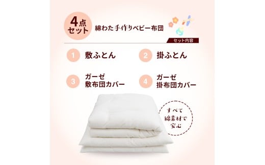 手作りベビー布団セット 綿わた100% 掛布団 敷布団 掛カバー 敷カバー | ベビー布団 ベビー 赤ちゃん 肌 優しい 出産祝い 洗える アレルギー対策 寝具 汚れ対策 出産準備 掛け布団 敷き布団 コットン コットン100% 孫 孫プレゼント 前橋市 群馬県