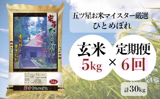 【定期便6回】令和7年産 新米 ひとめぼれ 玄米 5kg 五ツ星お米マイスター 厳選米 ふるさと納税 お米 ご飯 ごはん 炊飯 お弁当 おにぎり 送料無料 岩手県 一関市