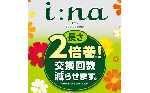 エリエール トイレットペーパー ダブル 2倍巻き 72ロール 6パック i:na イーナ 12R(ダブル・50m)×6パック 日用品 消耗品 新生活 備蓄 防災 愛媛県 四国中央市