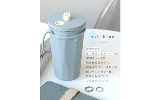タンブラー 水筒 ストロー付き 【アッシュブルー×アイボリー】〈ライズクリエイション @Rise〉 日用品 保温 保冷 持ち運び 便利 ギフト 奈良県 奈良市 10-248