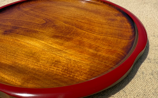 - <香川漆器>30cm梅型盆 スリ漆渕朱【1620842】