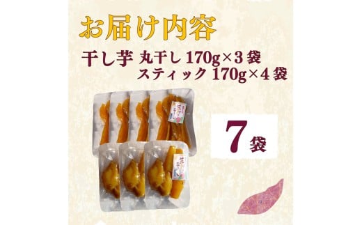 干し芋 丸干し 170g 3袋 スティック 170g 4袋 計7袋 干し芋 干しいも 紅はるか 国産 自然食品 おやつ スイーツ 健康食品 保存食 人気 ギフト プレゼント 半生タイプ しっとり 甘い 熟成 天日干し 安心 安全 栄養価 食物繊維 ビタミン ミネラル グルテンフリー ヘルシー ダイエット おすすめ おいしい 美味しい あまい 健康 お土産 贈答品 静岡 県 牧之原 市 青野さんち